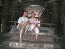 Pienen freesautumisen ja aamiasdosien jälkeen olimmekin valmiita palaamaan Mysoreen. Katsastimme ensin majoituspaikkamme spa Windflowerin, jossa pistelimme lounasta poskeen. Loppuiltapäivästä ajoimme Chamundi Hillille katselemaan maisemia ja poikettiinpa ylhäällä temppelissäkin. Kuskin perässä suoritimme varsinaisen läpijuoksun, johon kuului muutamia pyhiä toimituksia kuten suitsuketta, jotain makeaa lientä, merkkiä otsaan jne. Temppelin henkilökunta kannusti meitäkin kovasti "tiskeille" mutta pysyttelimme takavasemmalla. Ylhäältä vuorelta johti tuhat porrasta rinnettä alas, hyvät karmat olisi saanut kiipeämällä ne alhaalta ylös... Siirryimme suosiolla autolla puoliväliin, jossa oli valtava musta kivihärkä. Tämä oli kuulemma Sivan menopeli. Saimme taas paikallisia kavereita ja lapsia ei tarvinnut houkutella kuvaan!